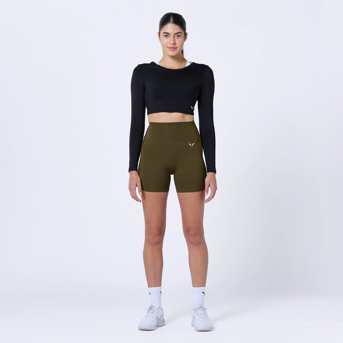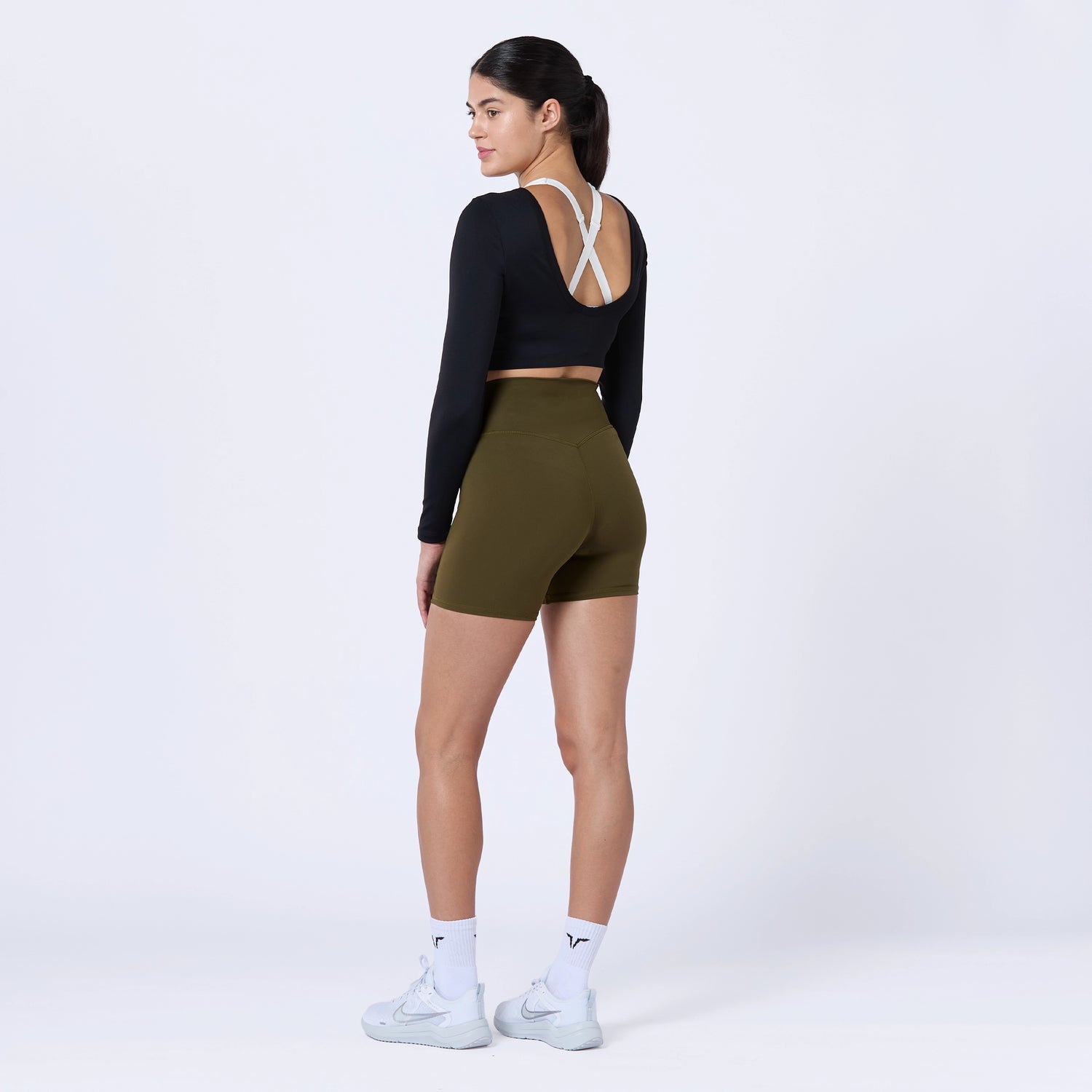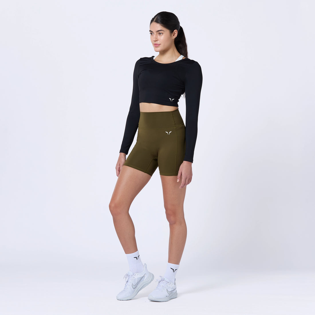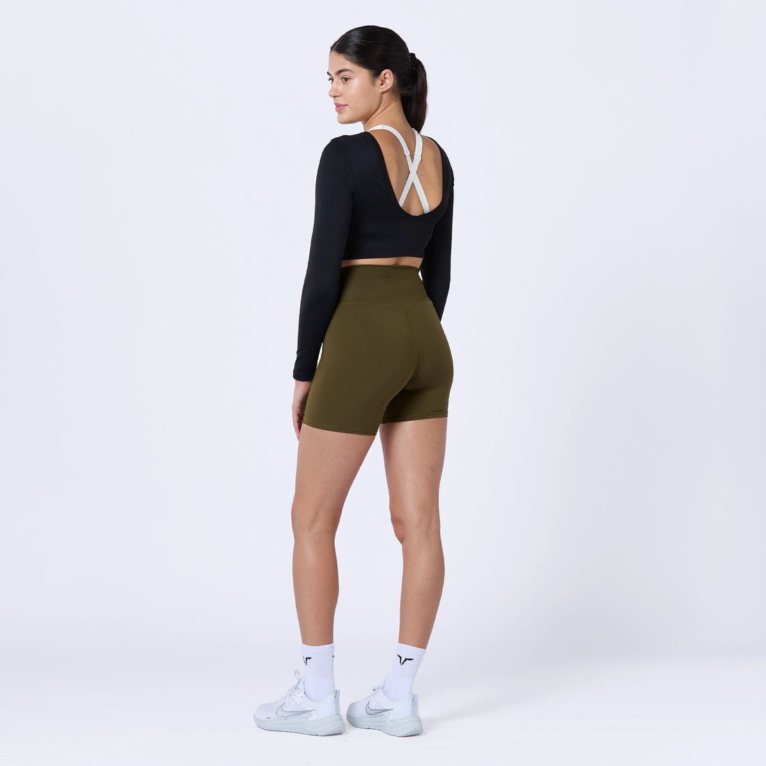 شورت بخصر مرتفع 5" - زيتوني داكن