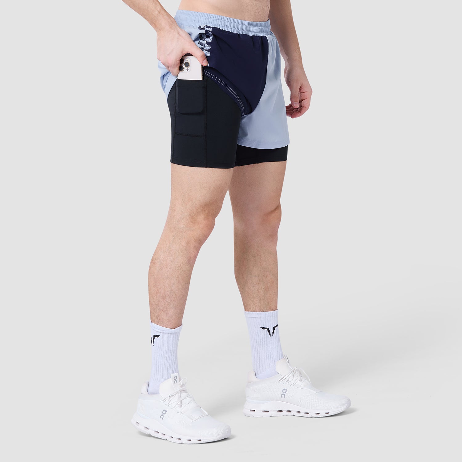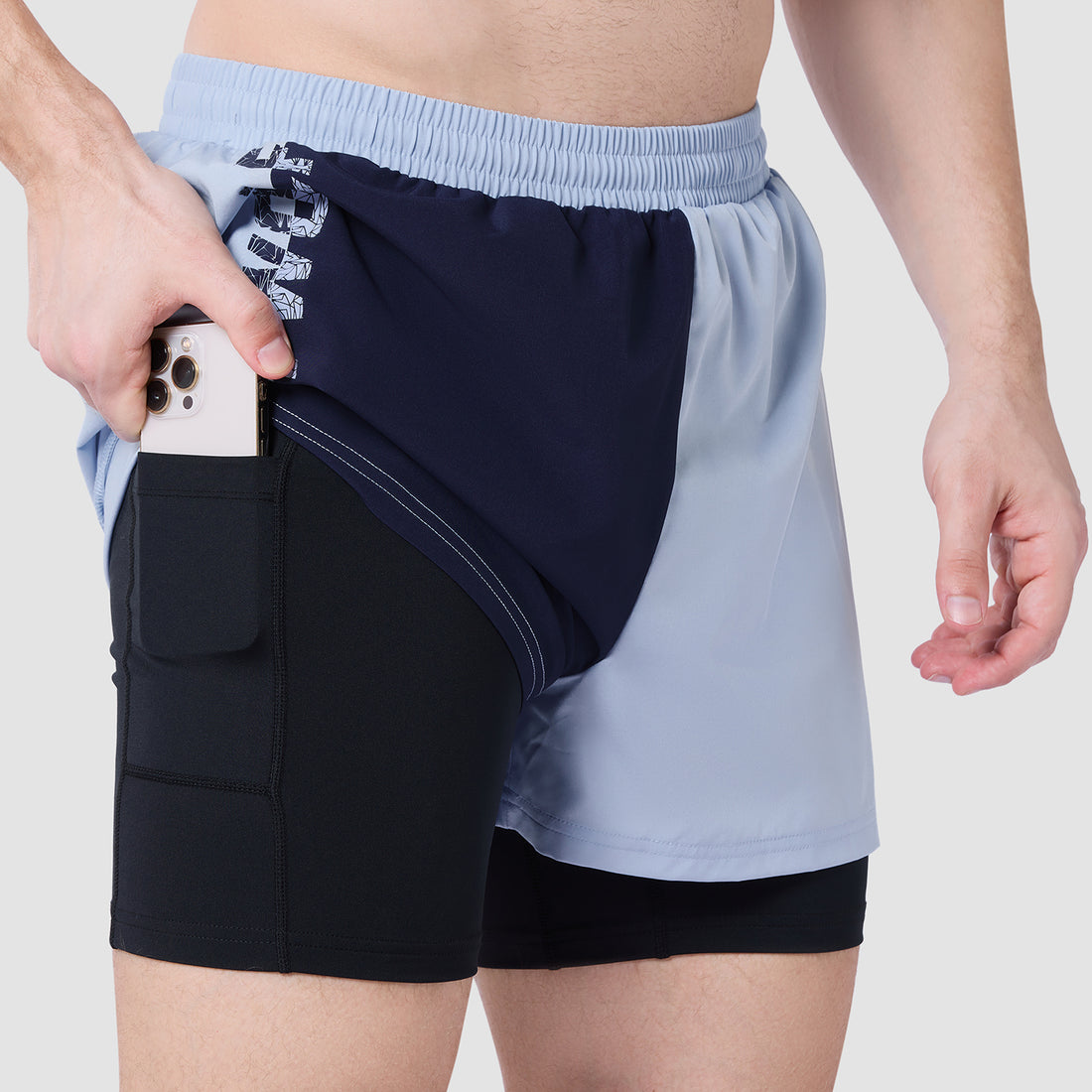 شورت كور 5 انش 2 في 1 - كحلي & أزرق سماوي