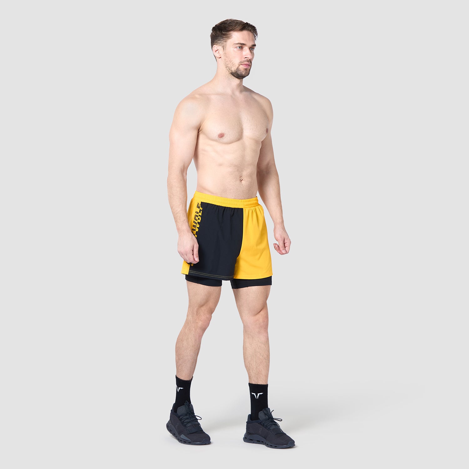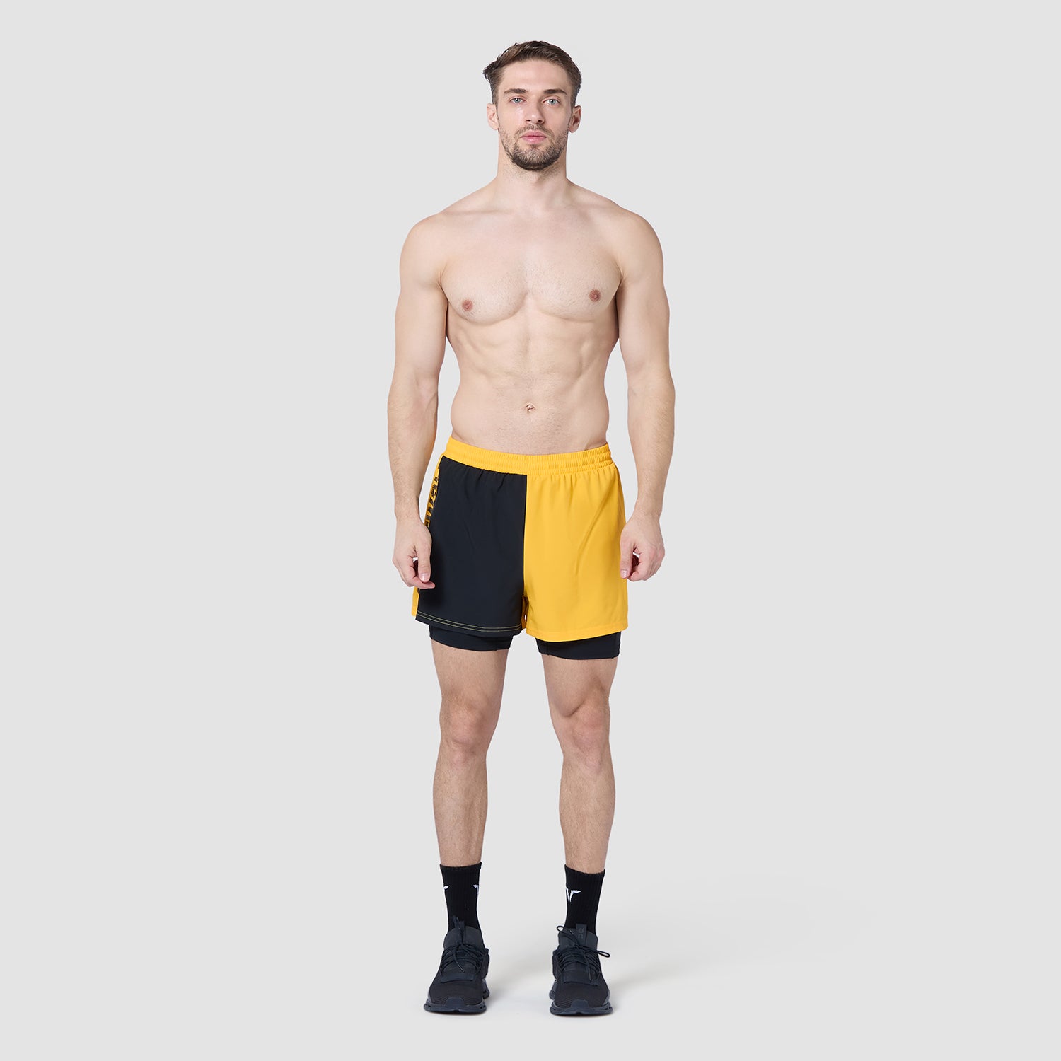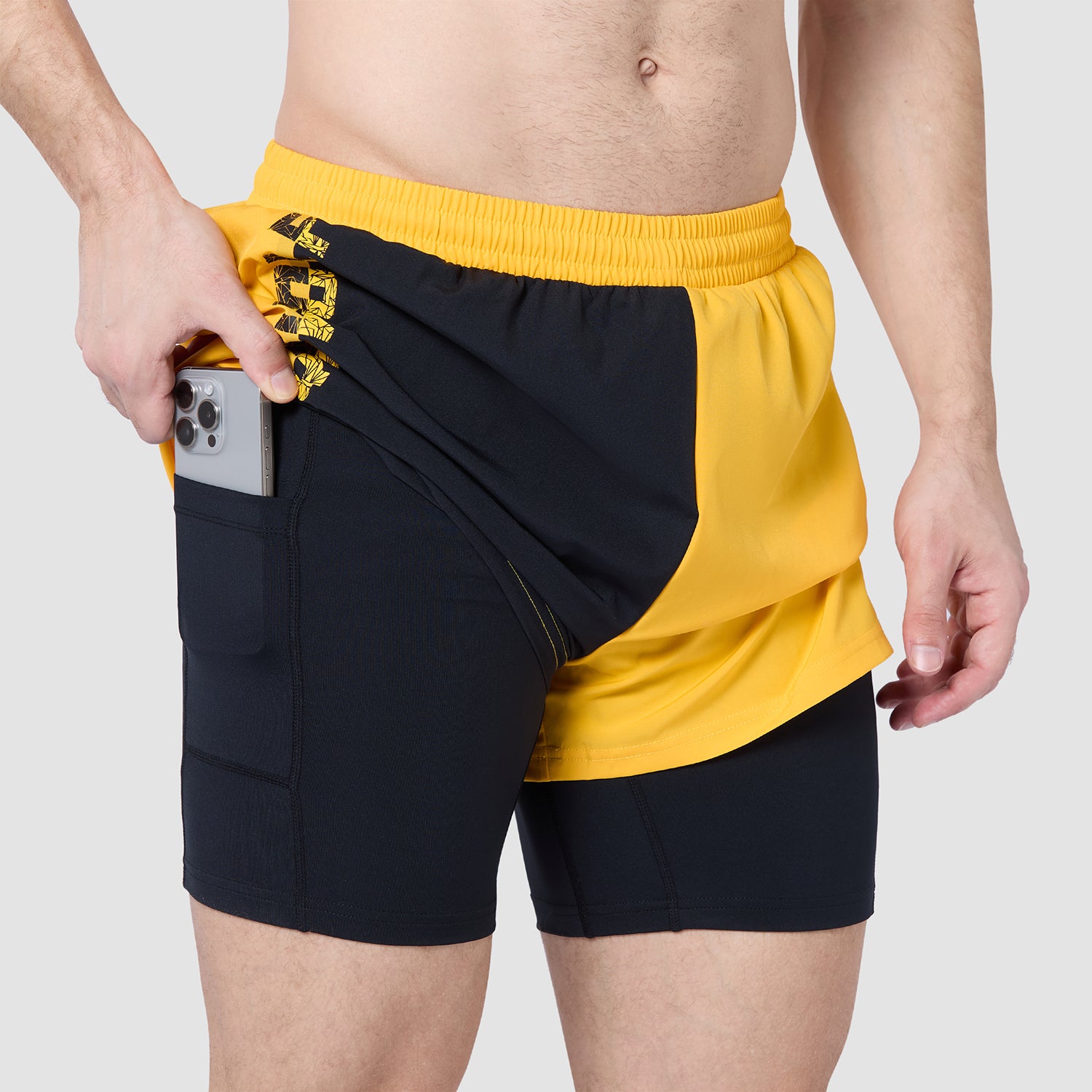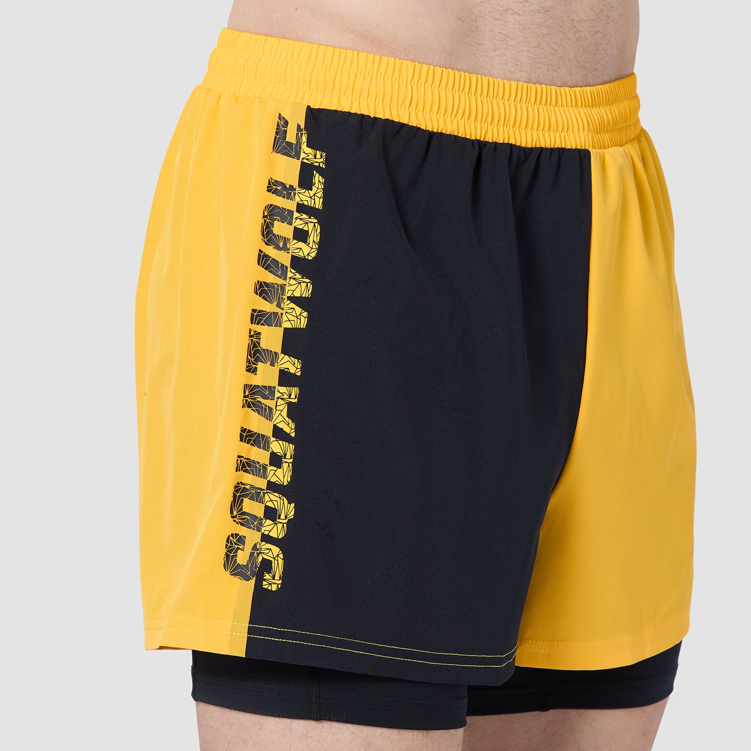 شورت كور 5 انش 2 في 1 - أسود وأصفر فاقع