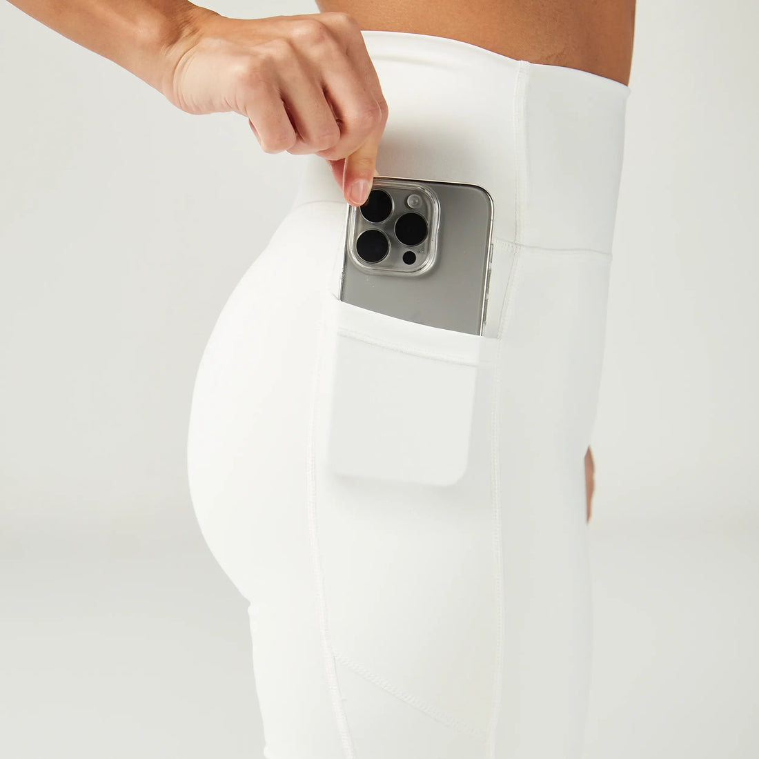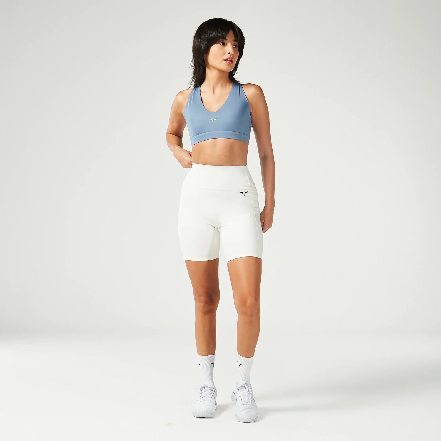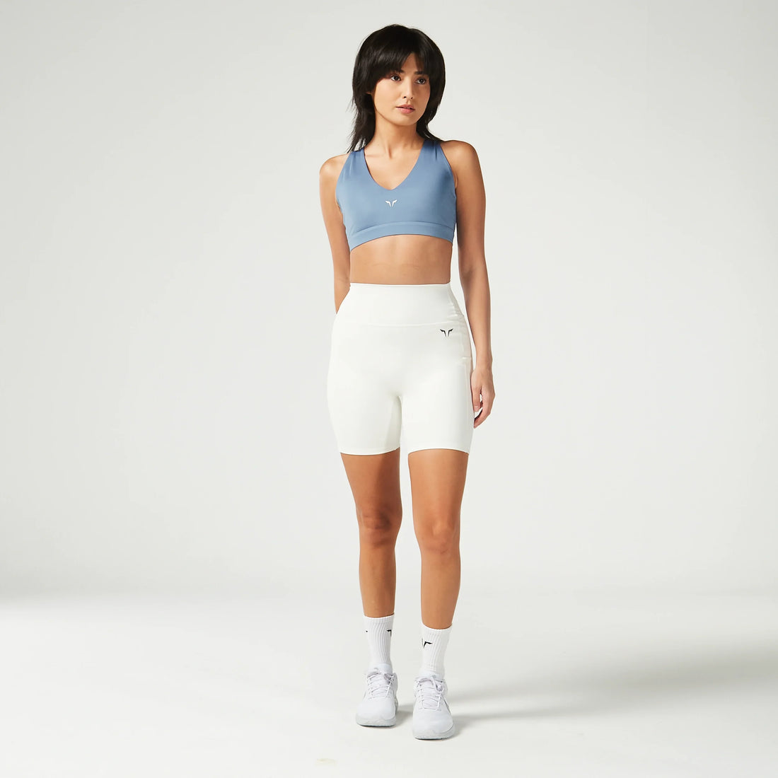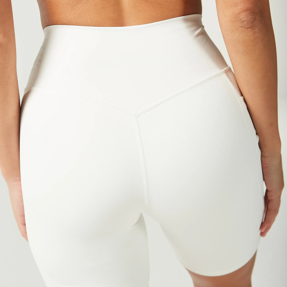 شورت بخصر مرتفع 7" طبقتين - أبيض لؤلؤي