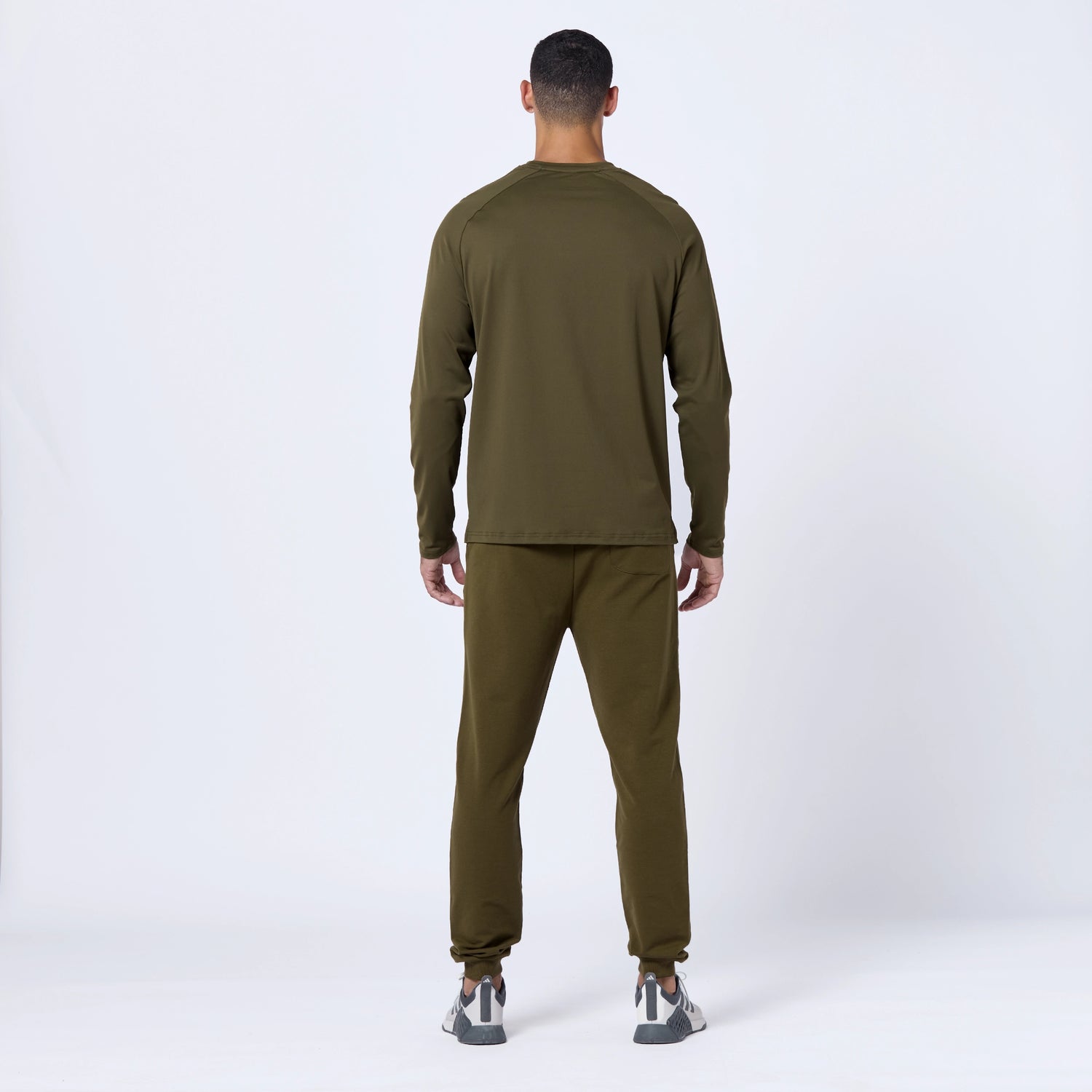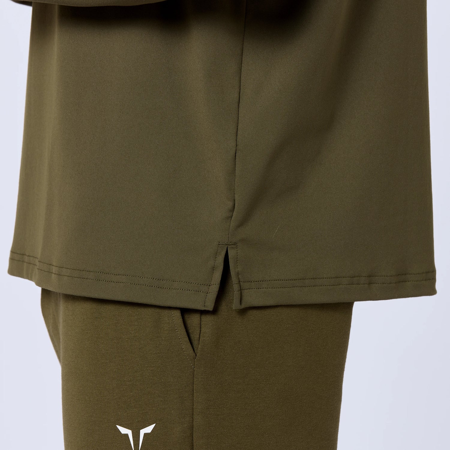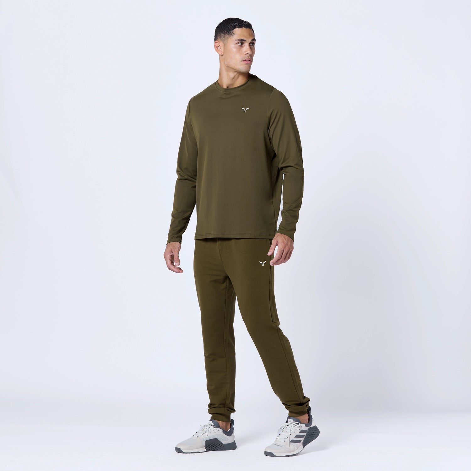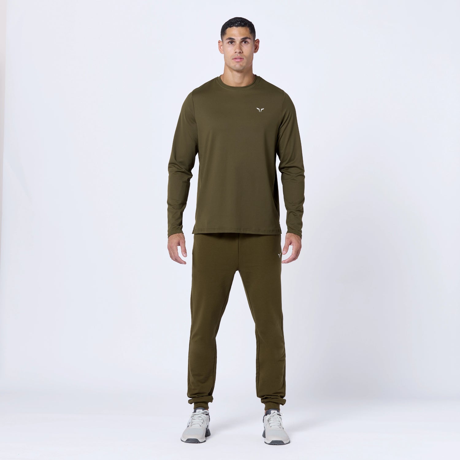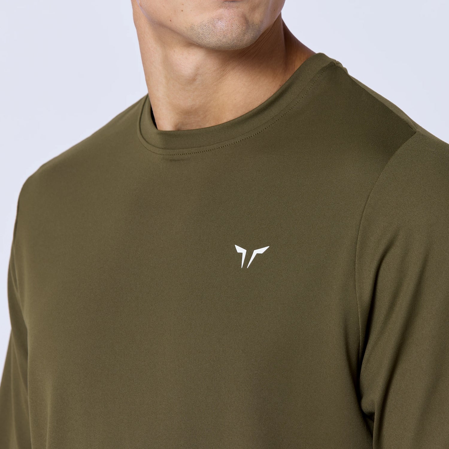 تيشرت ايسينشال اكتيف بأكمام طويلة - زيتوني داكن