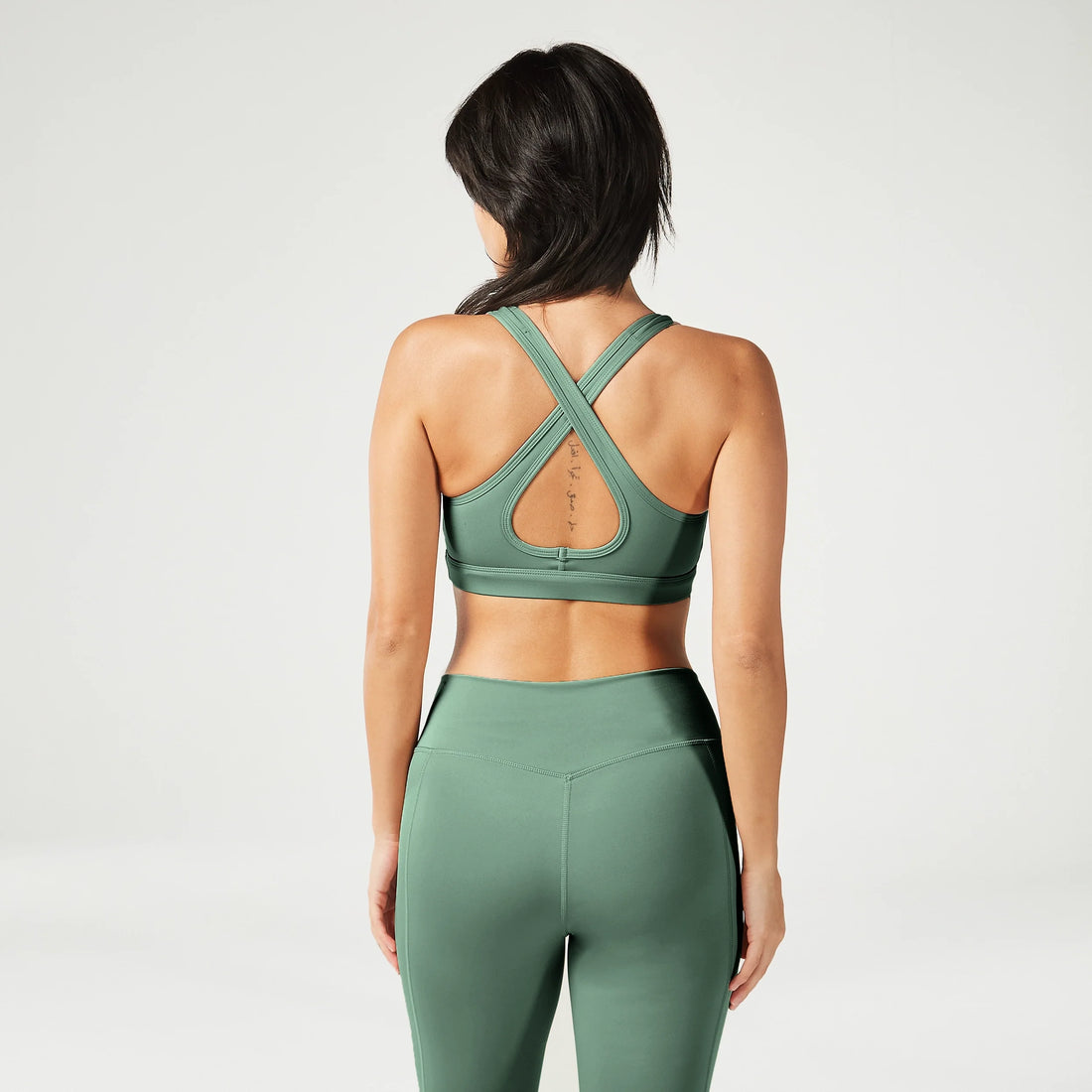 ايسينشال حمالة صدر متوسطة التحمل بتصميم خلفي - أخضر غامق