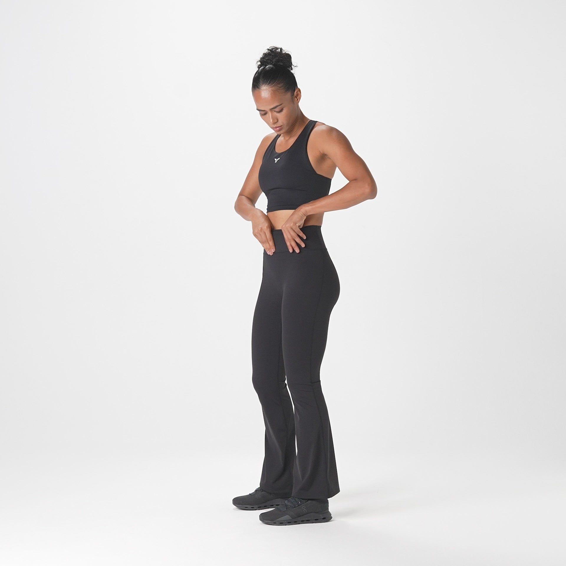 بنطلون فلريد بخصر مرتفع - أسود