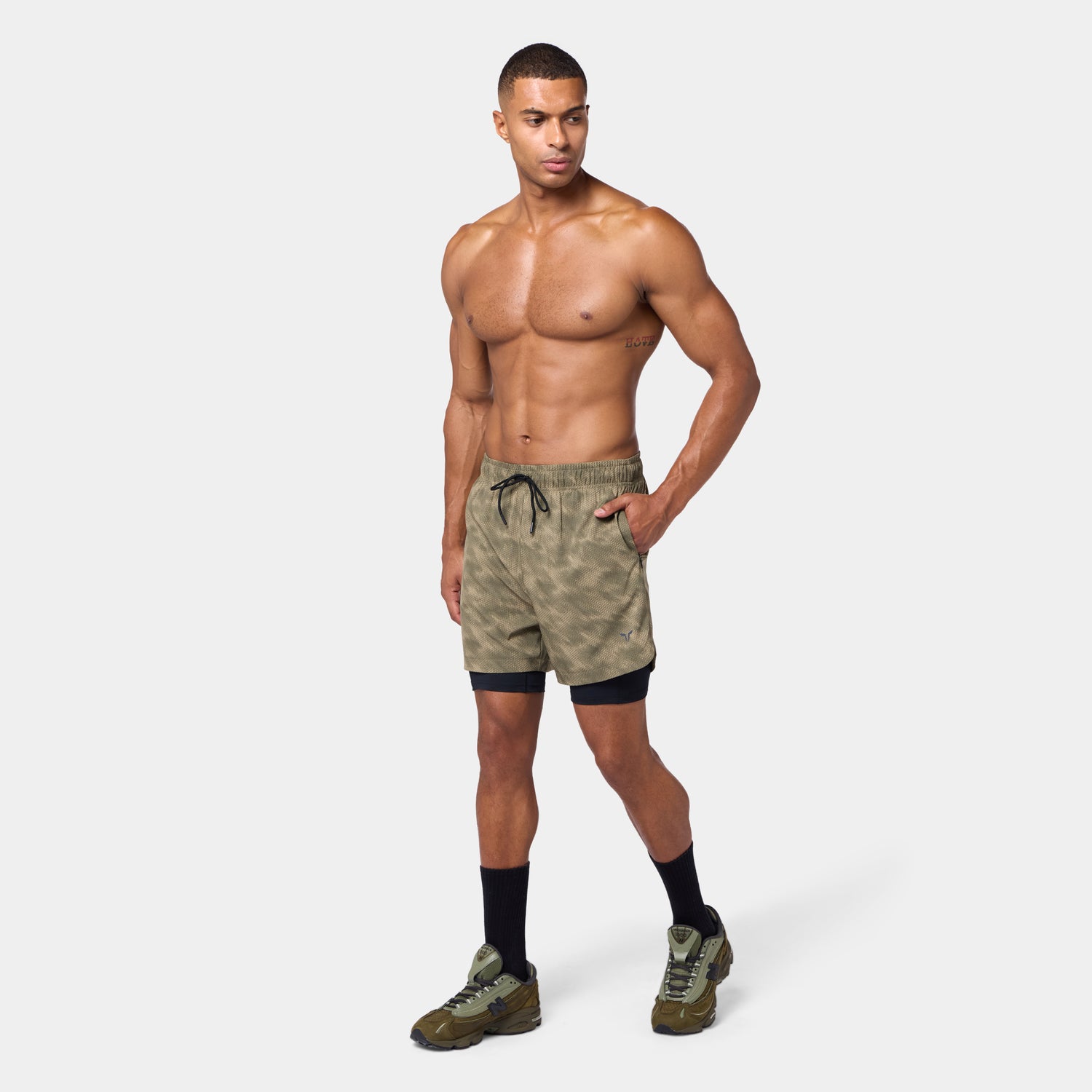 ليمتليس شورت 2 في 1 7" - طبعة زيتونية
