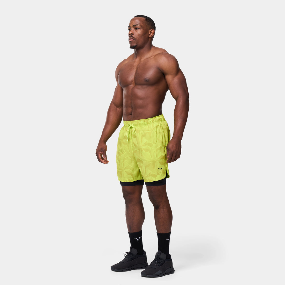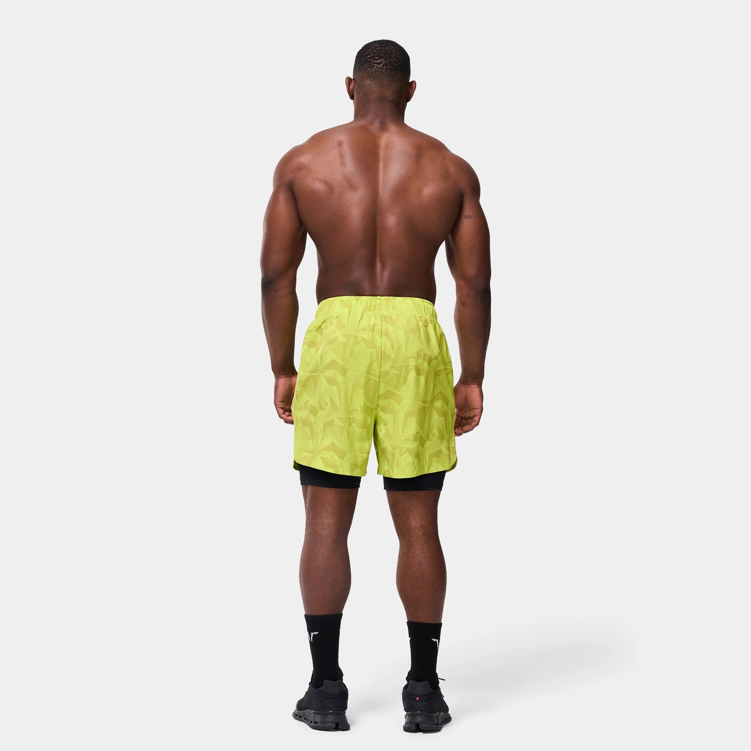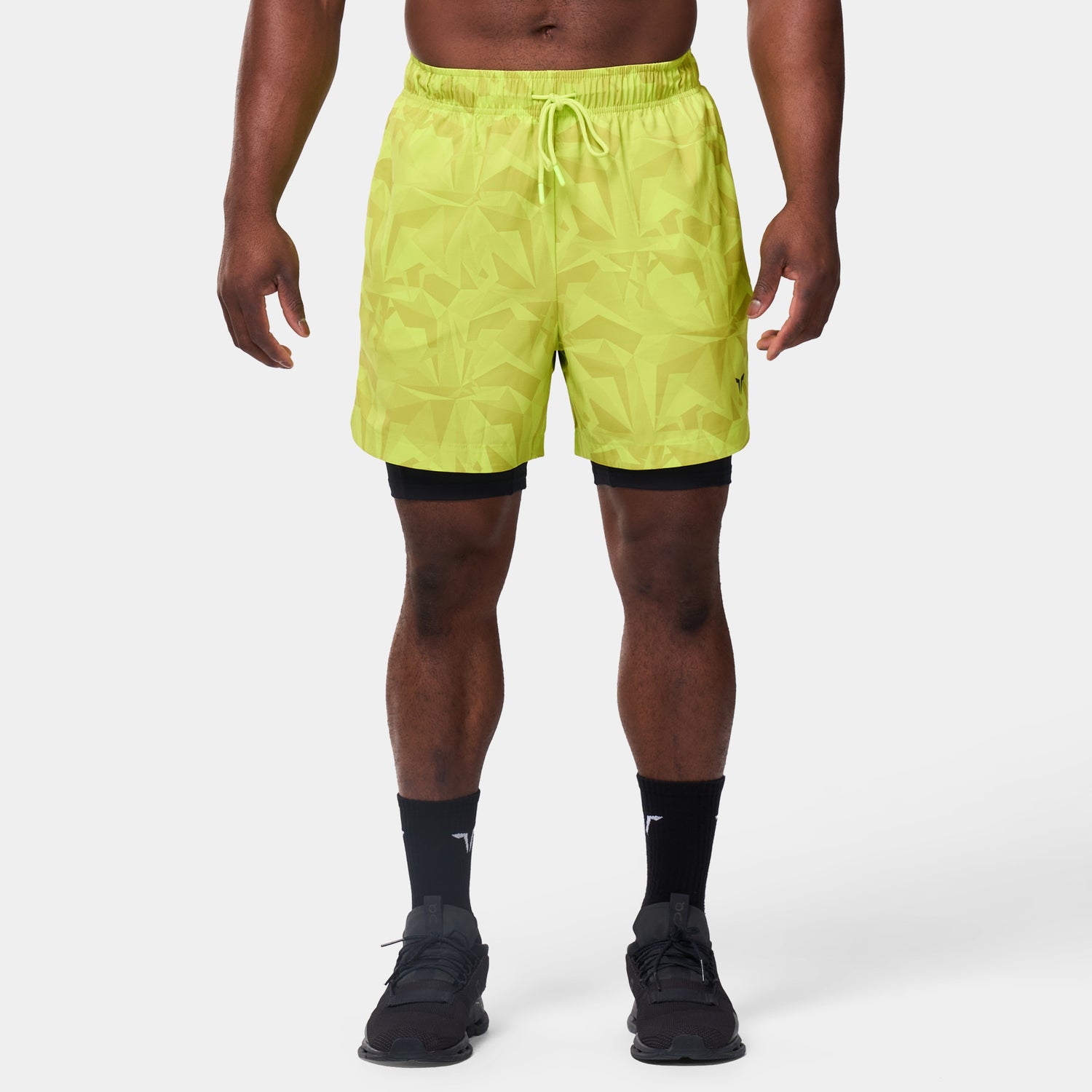 ليمتليس شورت 2 في 1 7 انش - أصفر فسفوري مموه