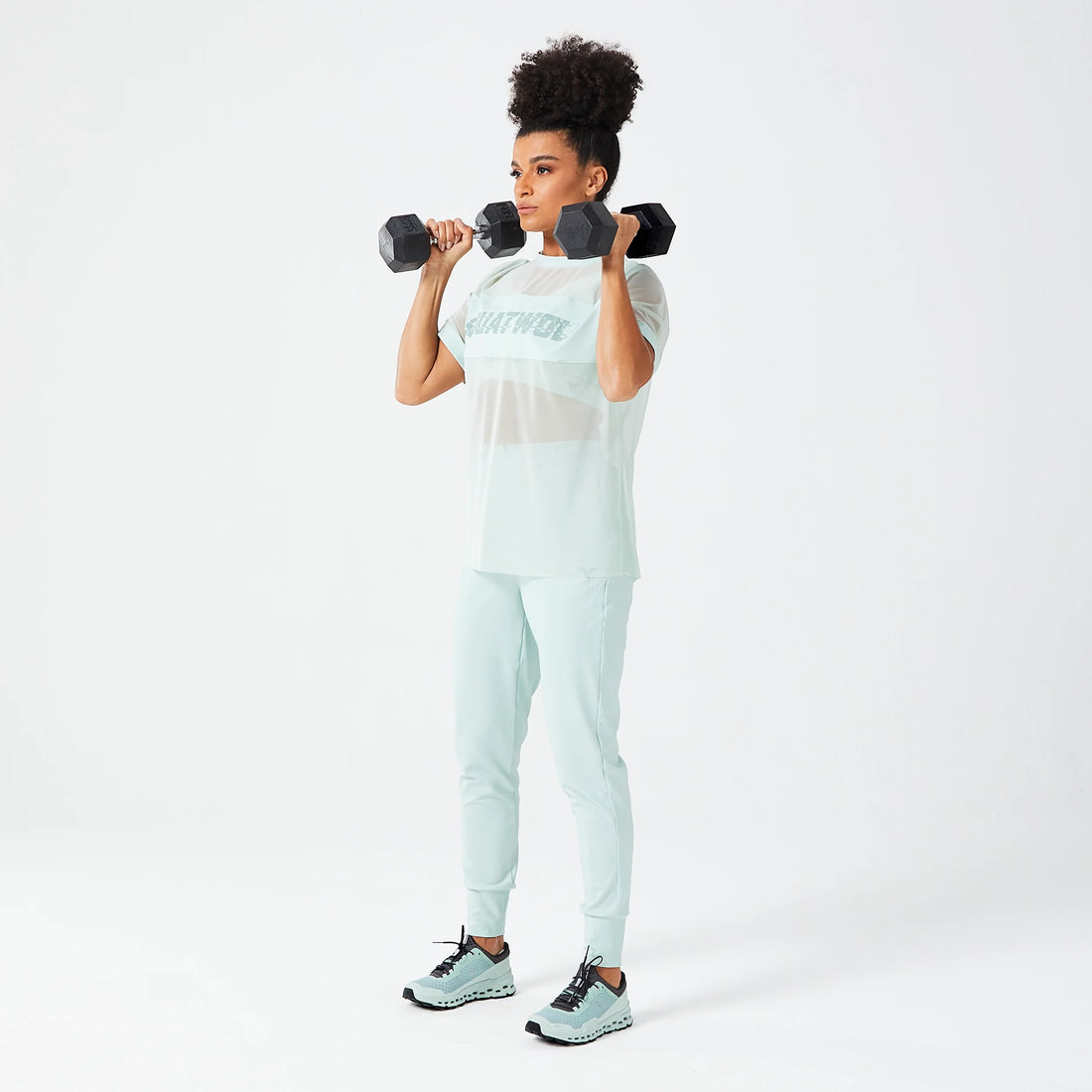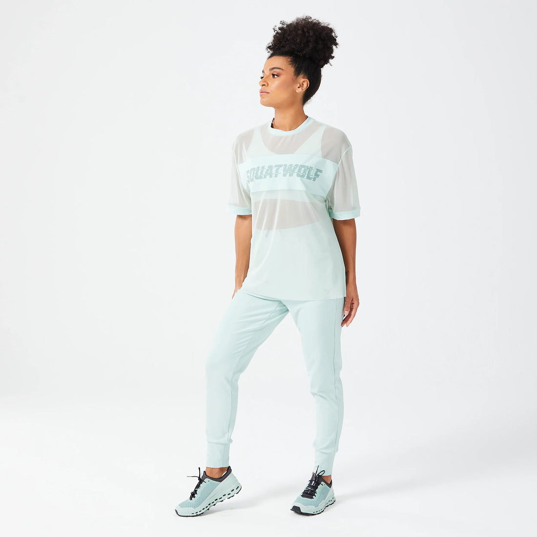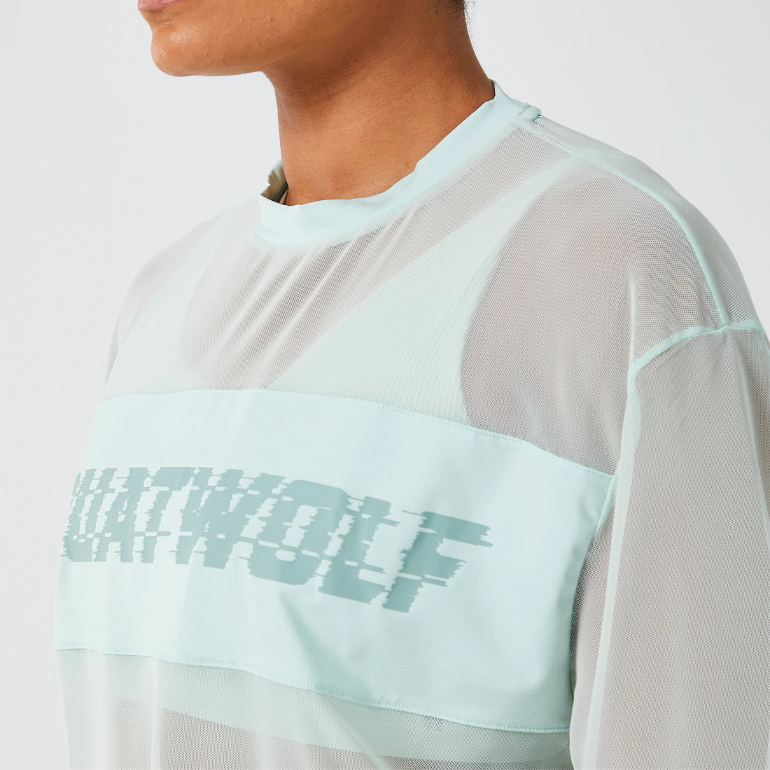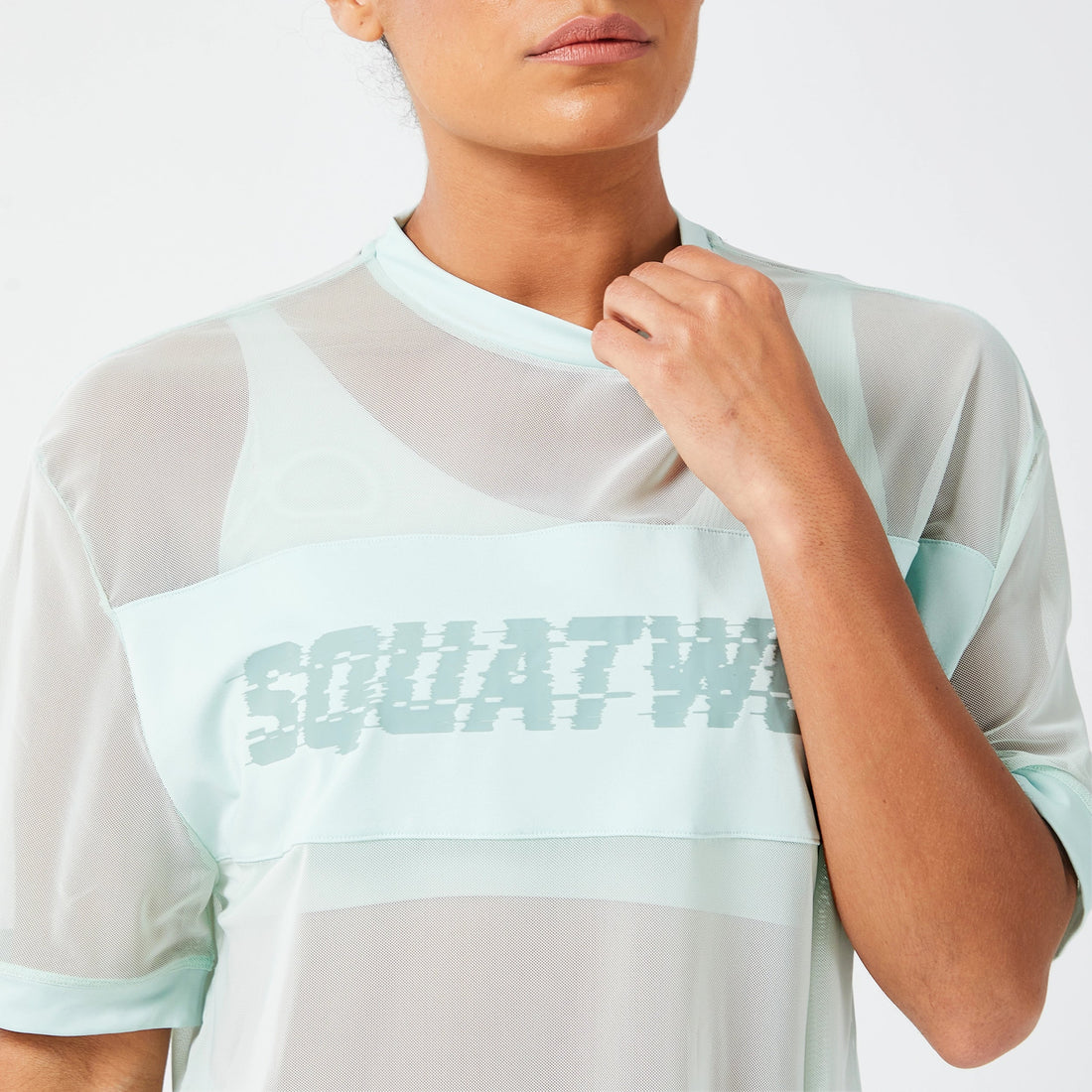 تيشيرت جليتش من قماش شبكي - سماوي فاتح