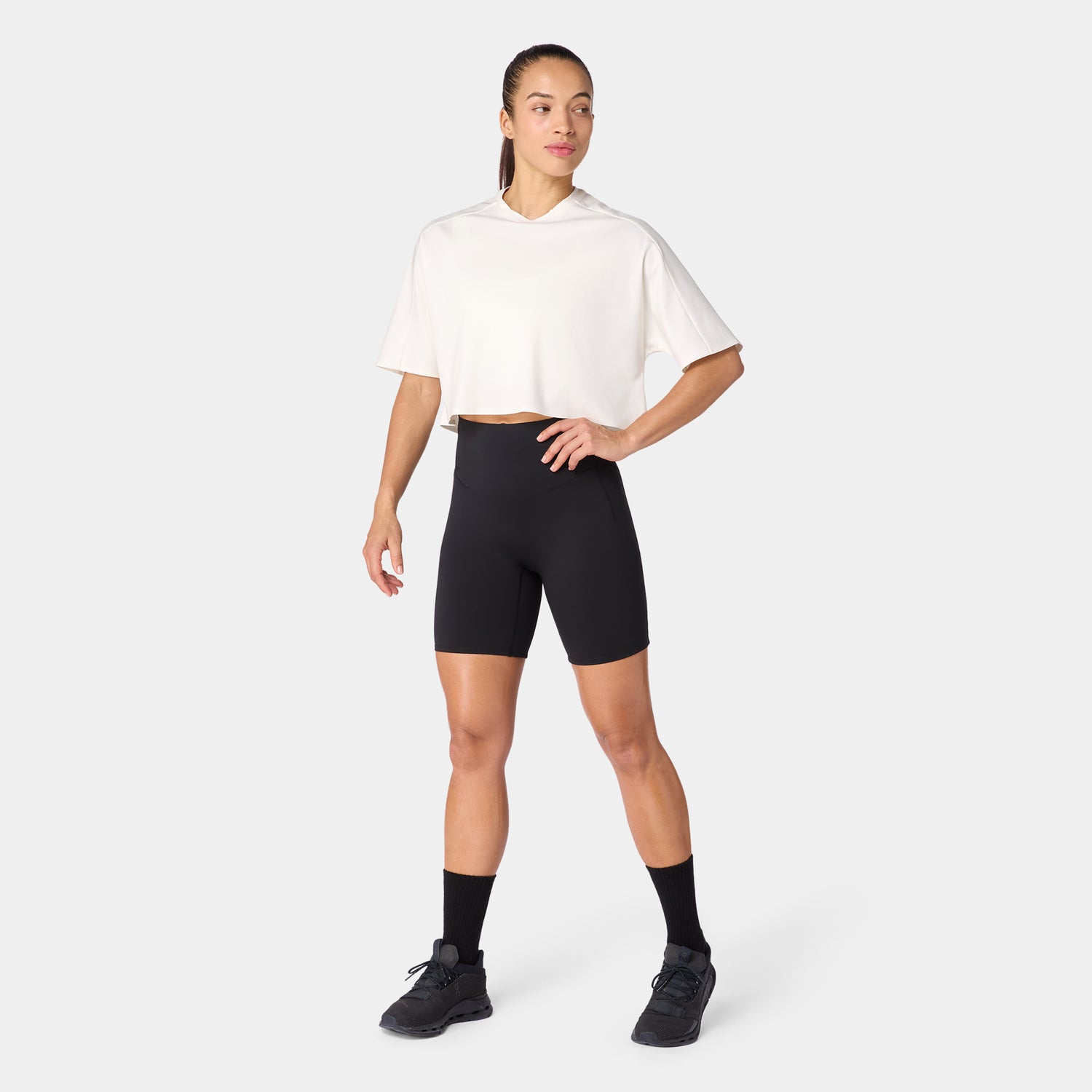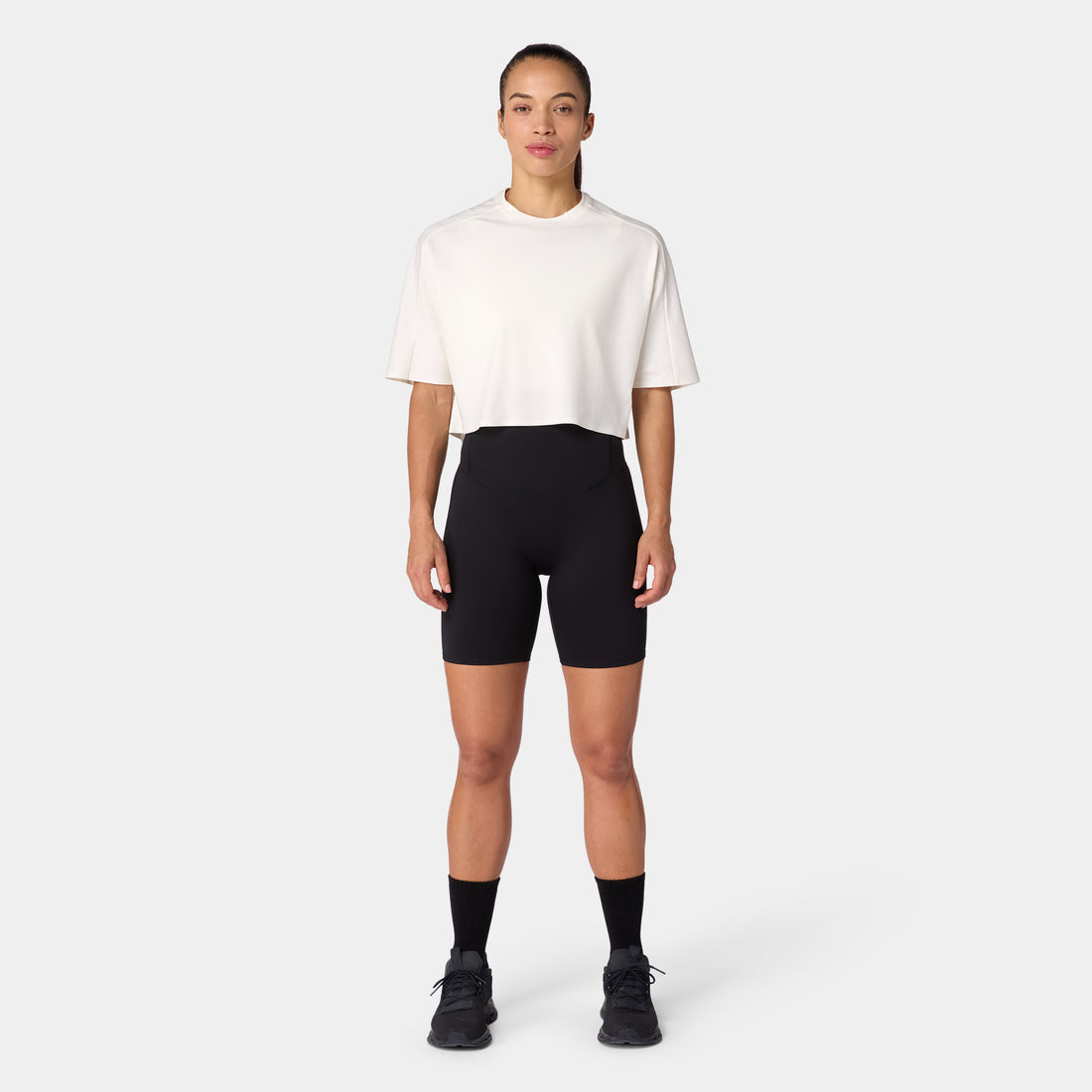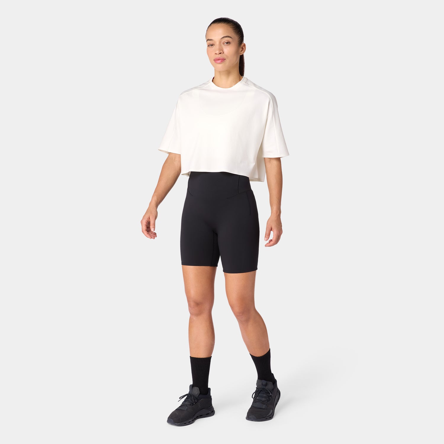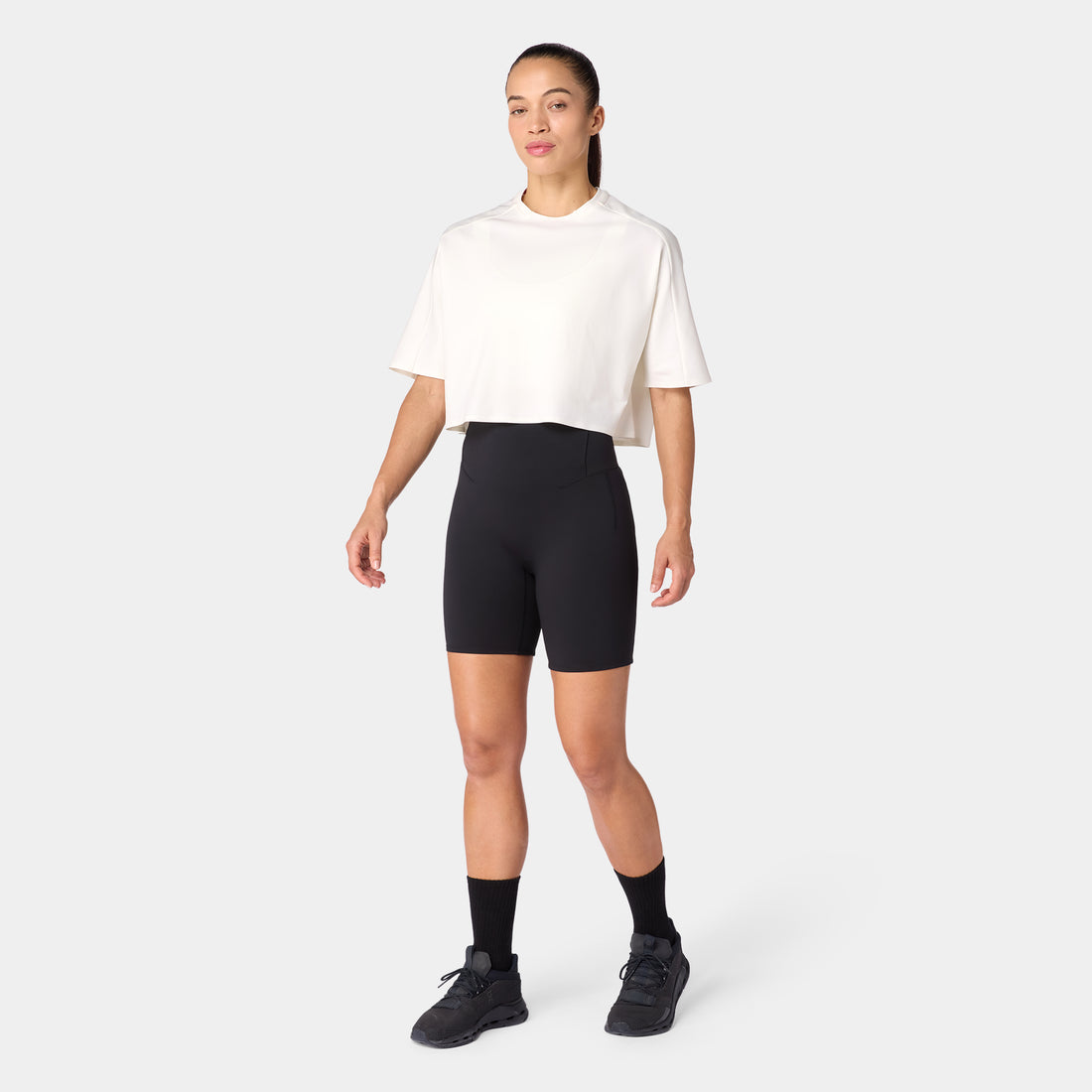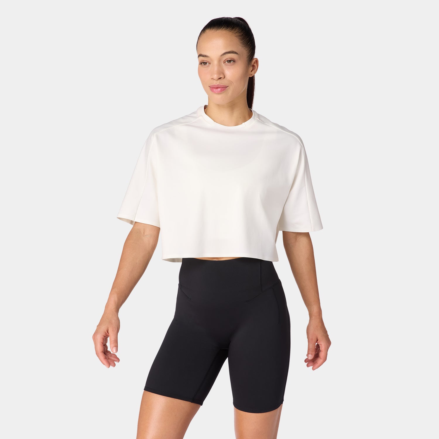 تيشيرت قطن بيما آكت دراي® للجيم فضفاض مرتفع - أبيض لؤلؤي