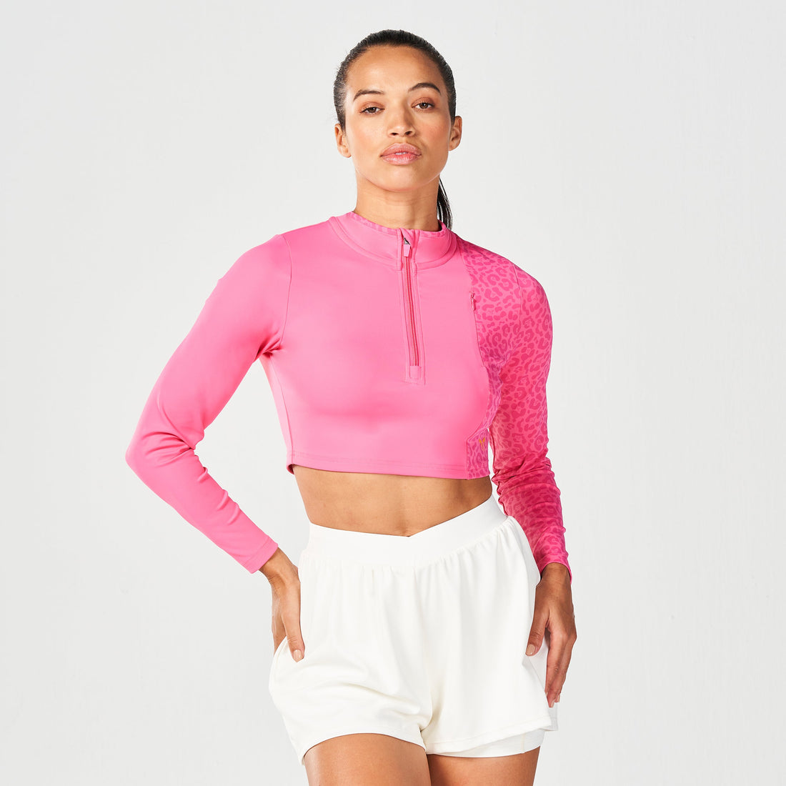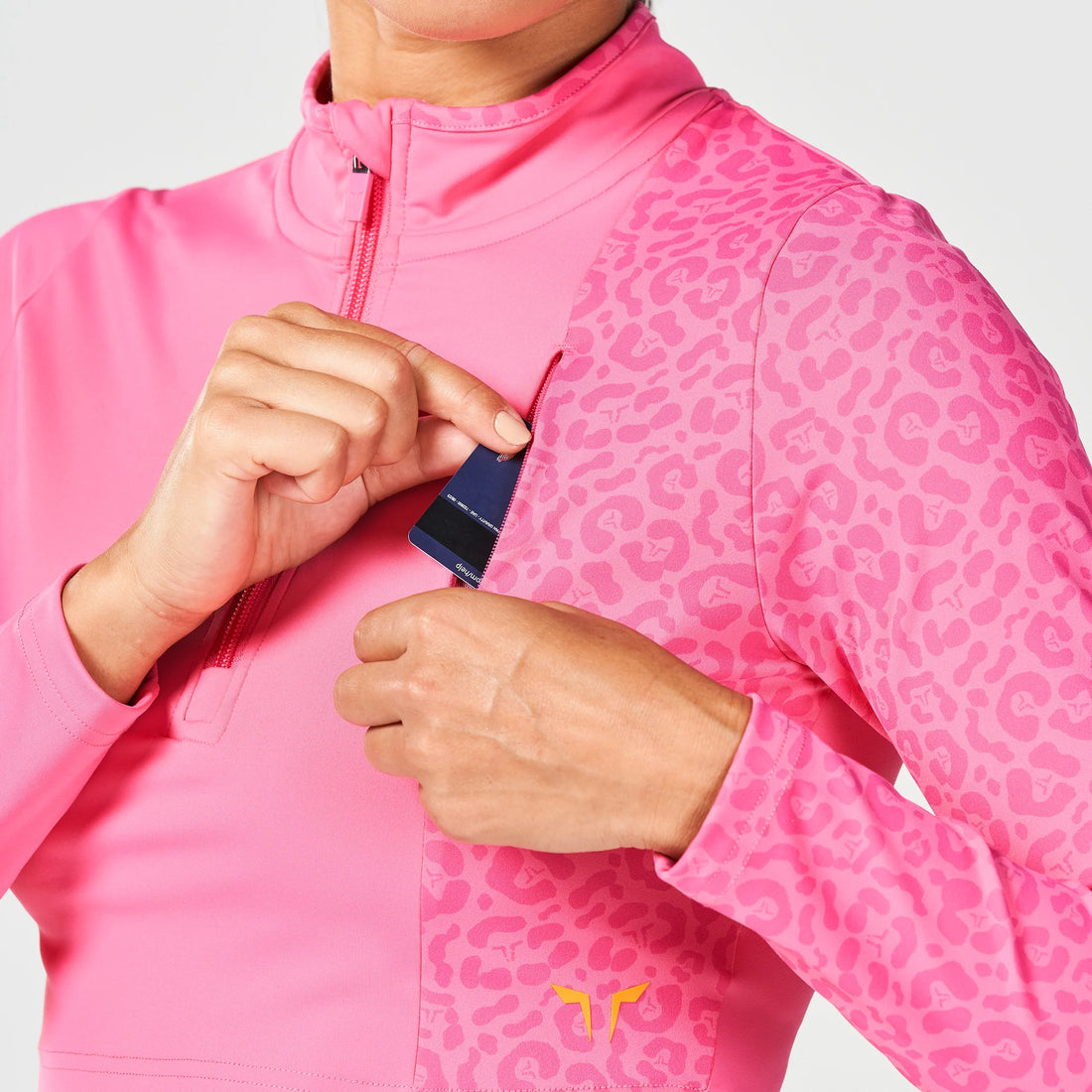 بلوزة أنتيمد بربع سحاب - طبعة وردي فاقع