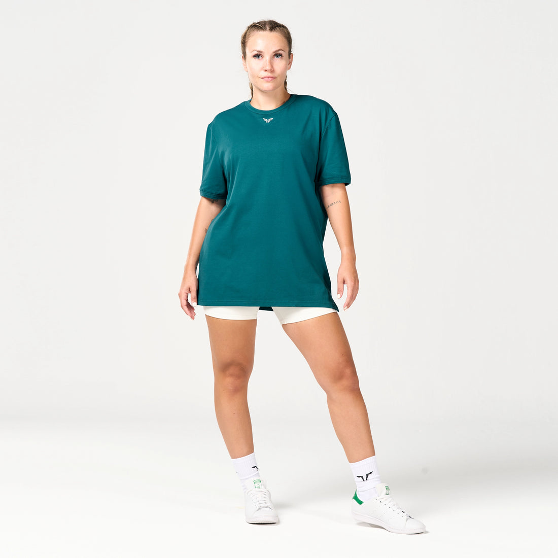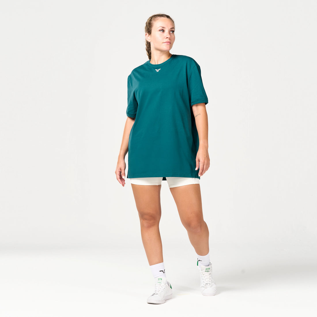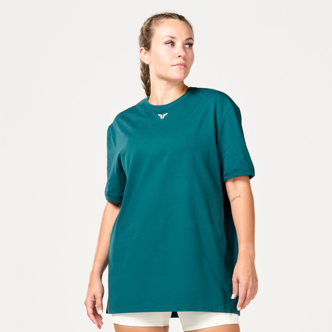 تيشيرت فضفاض مع شعار مطرز- أزرق كلاسيكي مارل