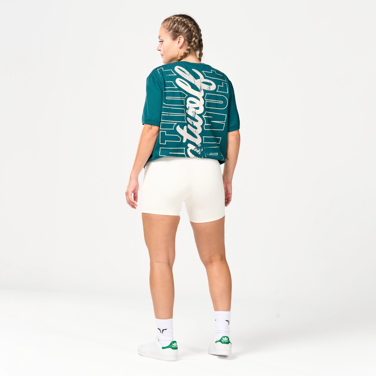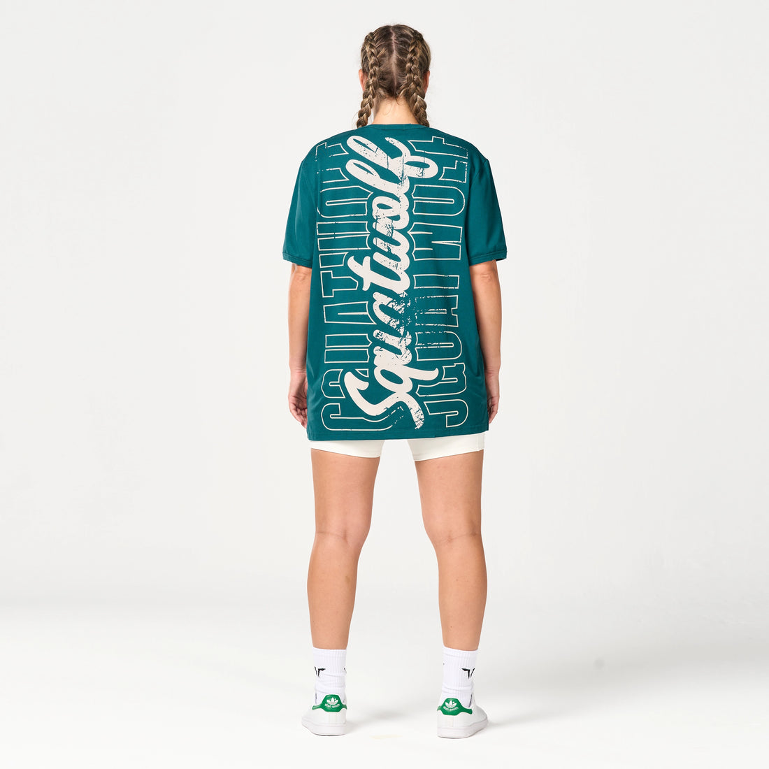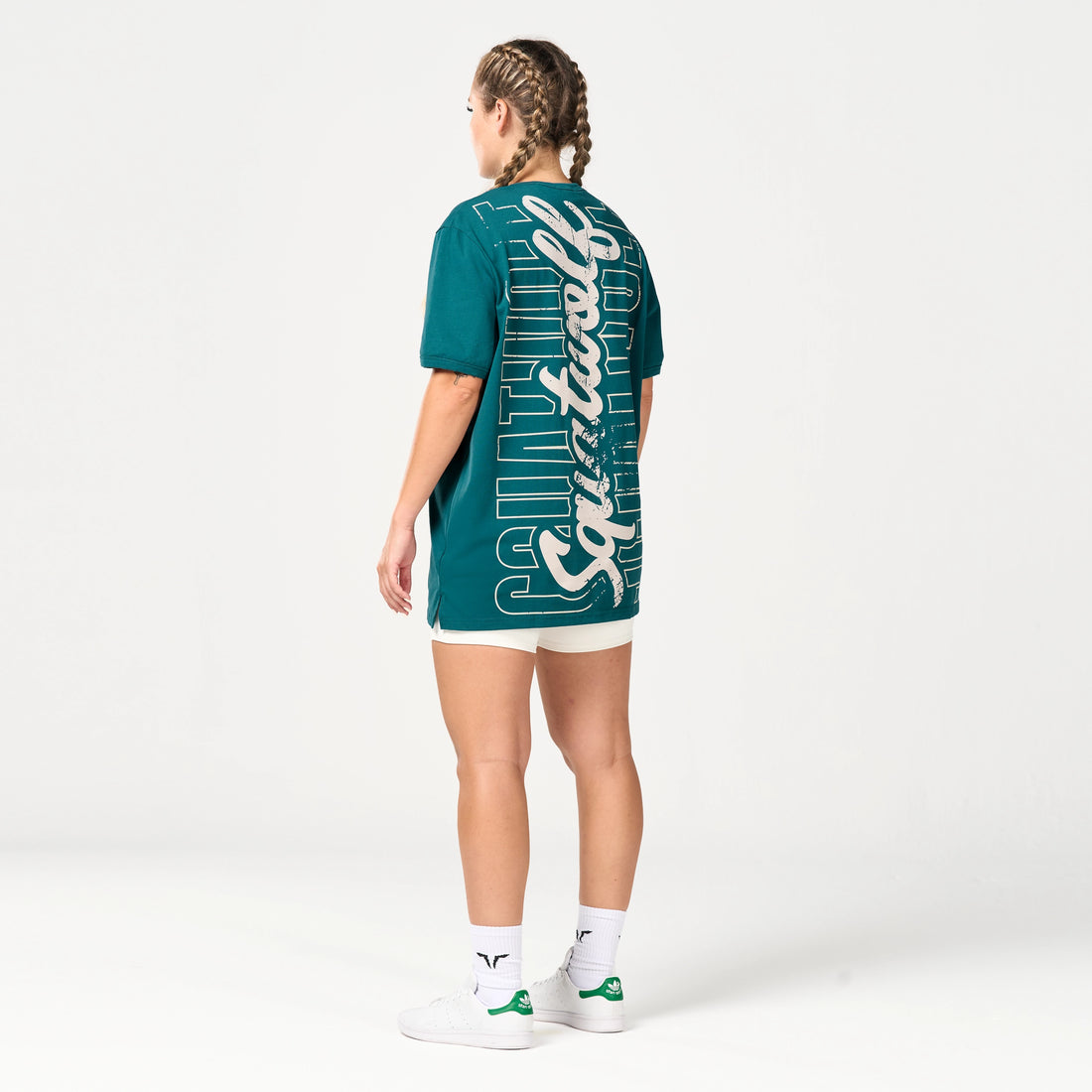 تيشيرت فضفاض مع شعار مطرز- أزرق كلاسيكي مارل