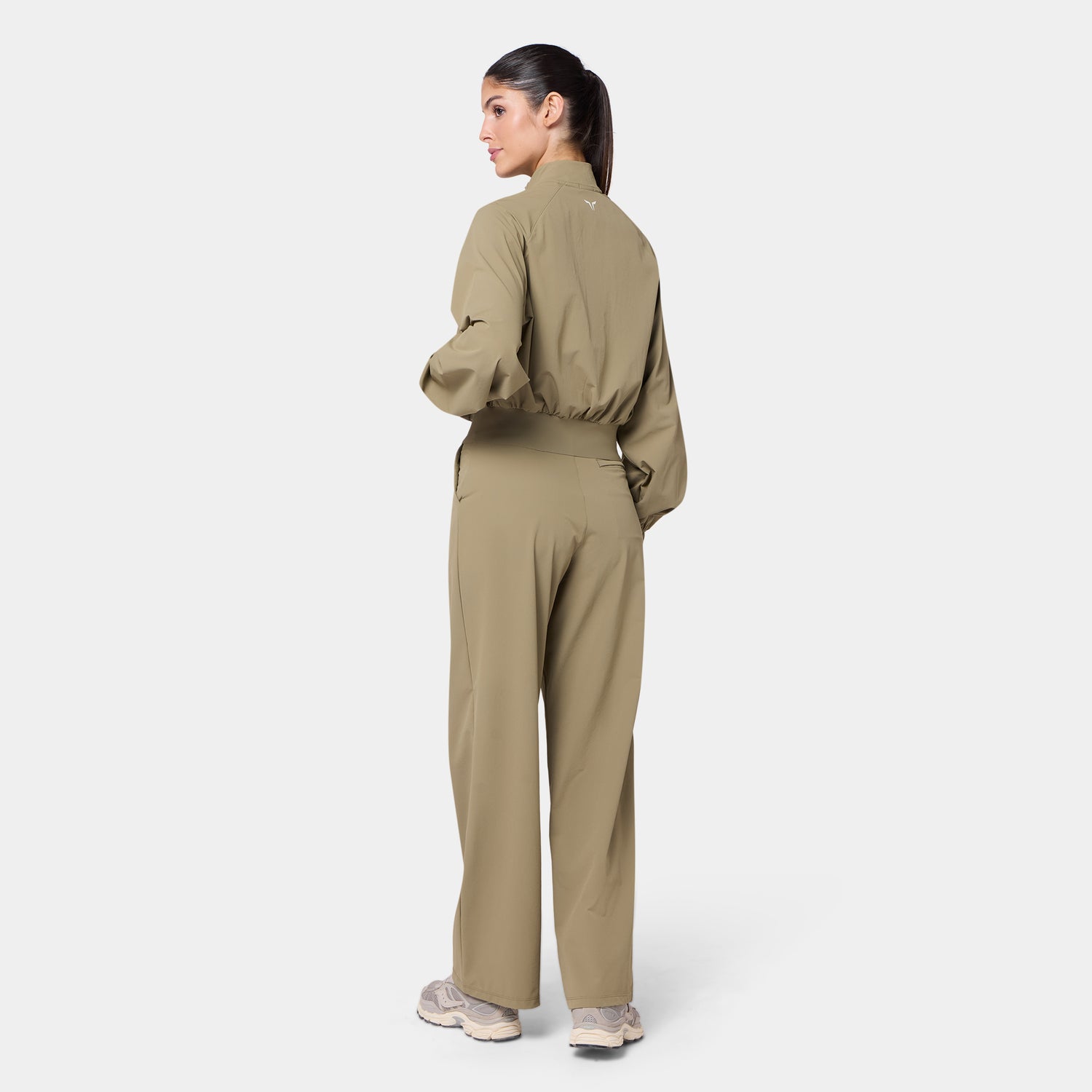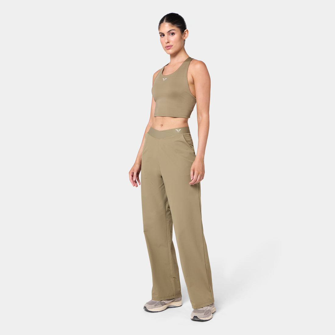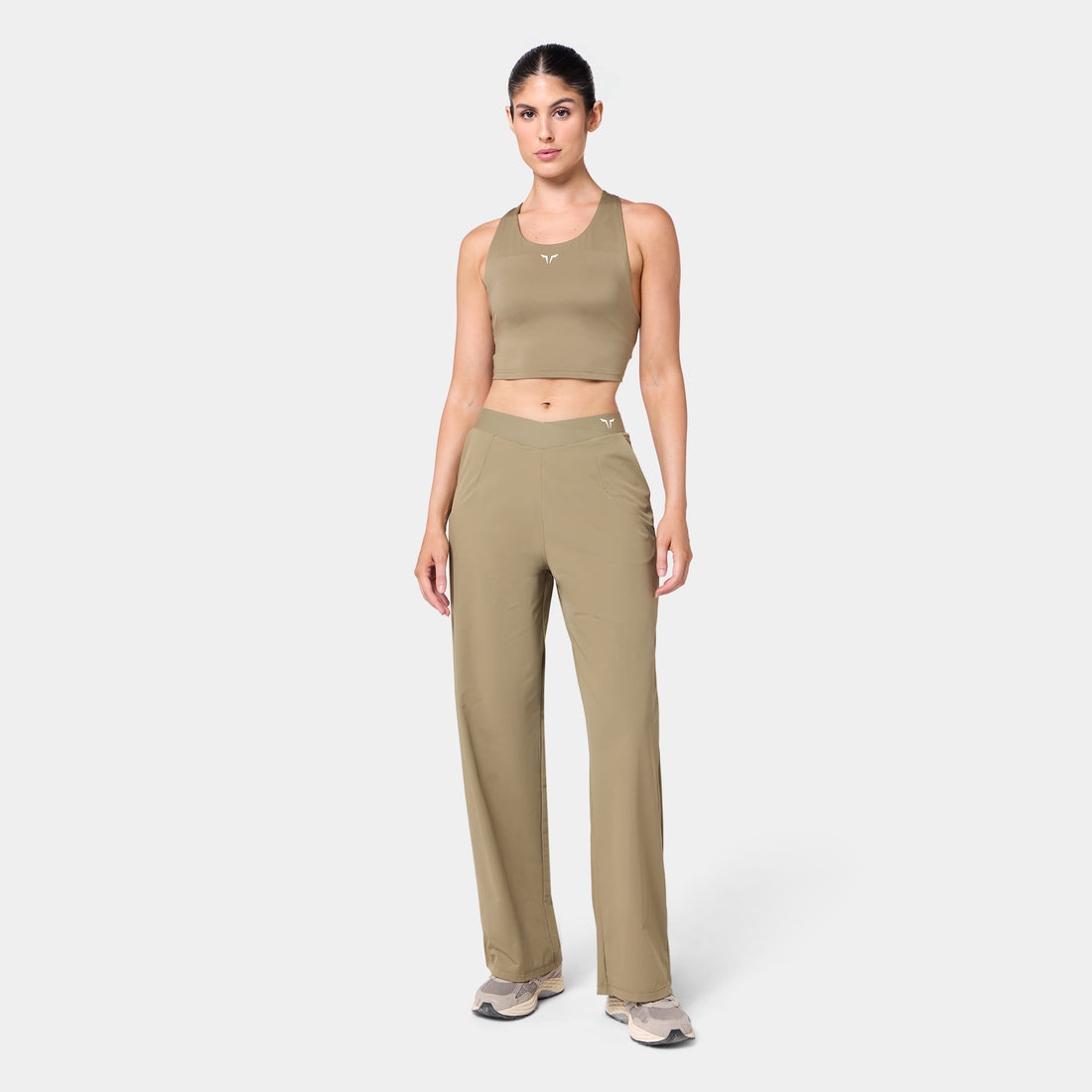 بنطلون واسع الساقين بخصر متقاطع - عشبي